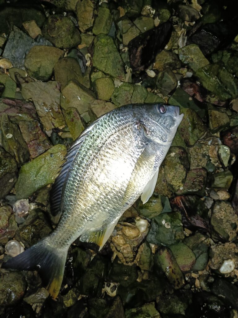 橋桁ではシーバス無反応も同行者が年無しクロダイをキャッチしてました😁すげー!
