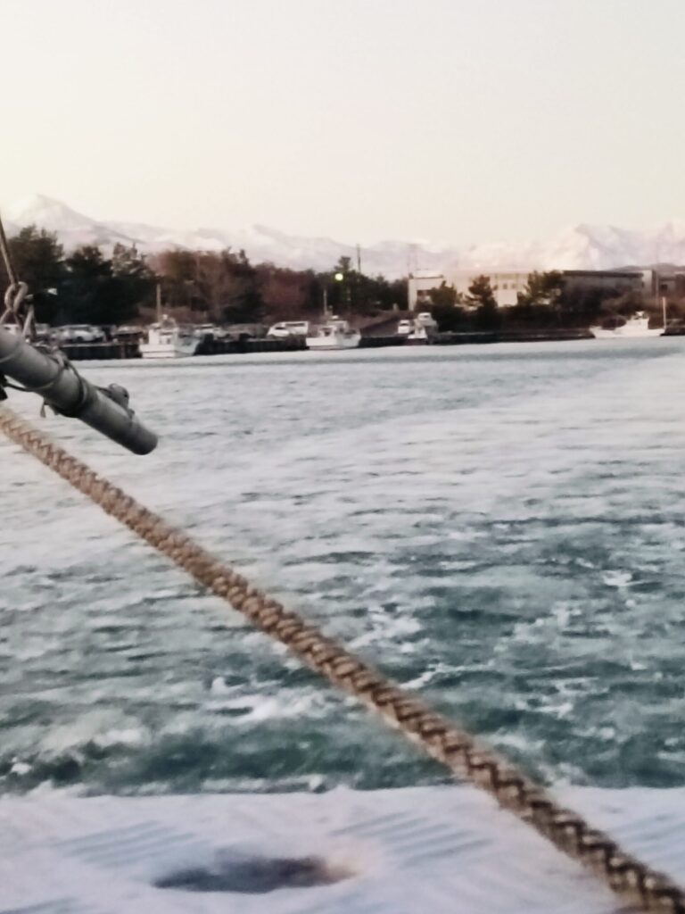 沖に出ると懐かしい大きな揺れ。ああこんなんだったな。落ち着いているとはいえ、相当な揺れだ(笑)これが冬の日本海。これでも普段からすれば、ほぼ凪(笑)